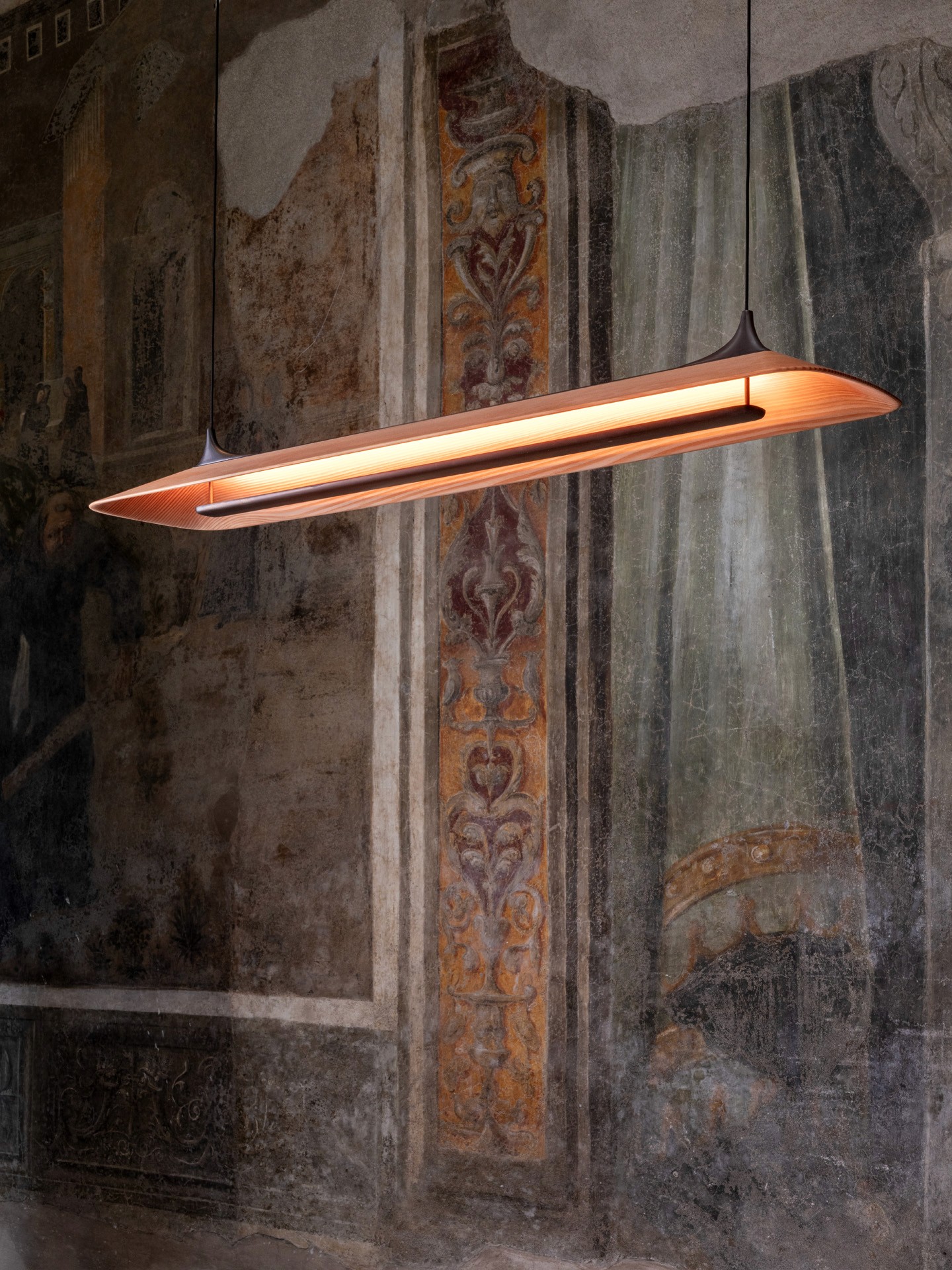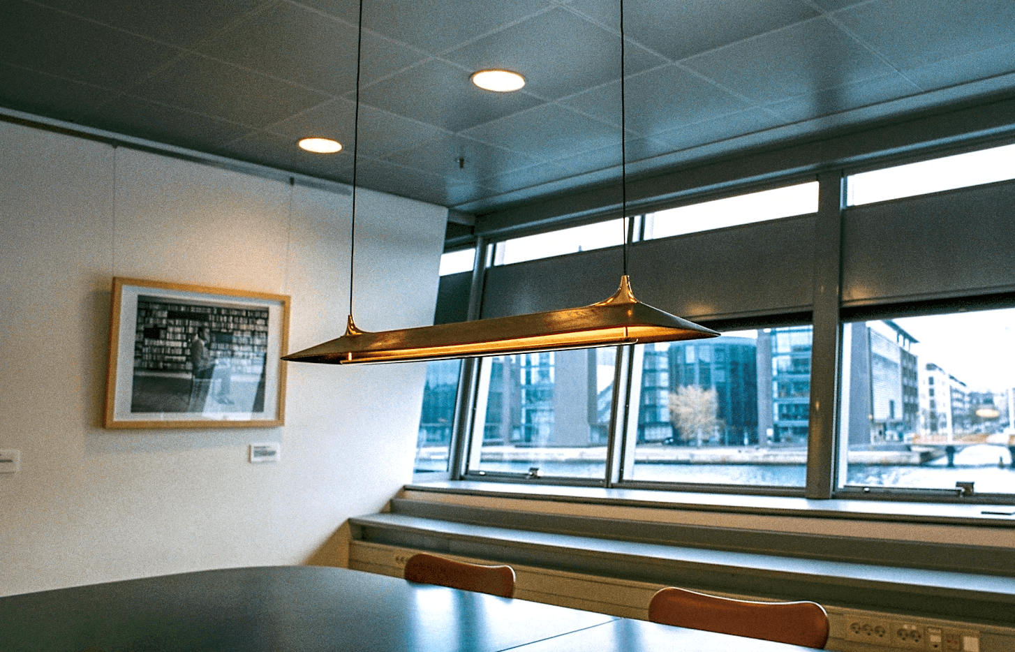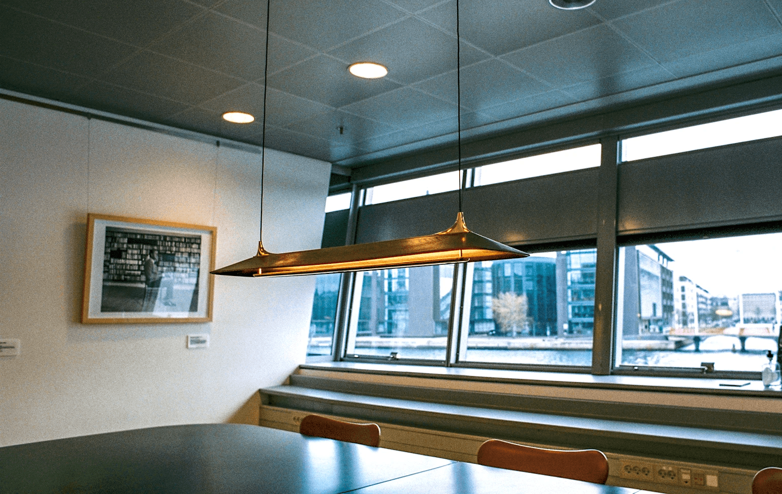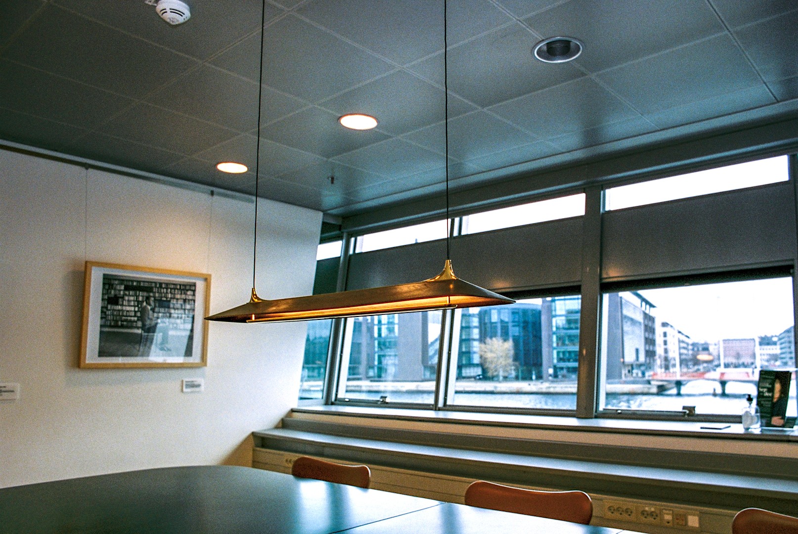 No. 1 pendant in Sipo Mahogany and polished brass for meeting facilities in The Royal Danish Library.